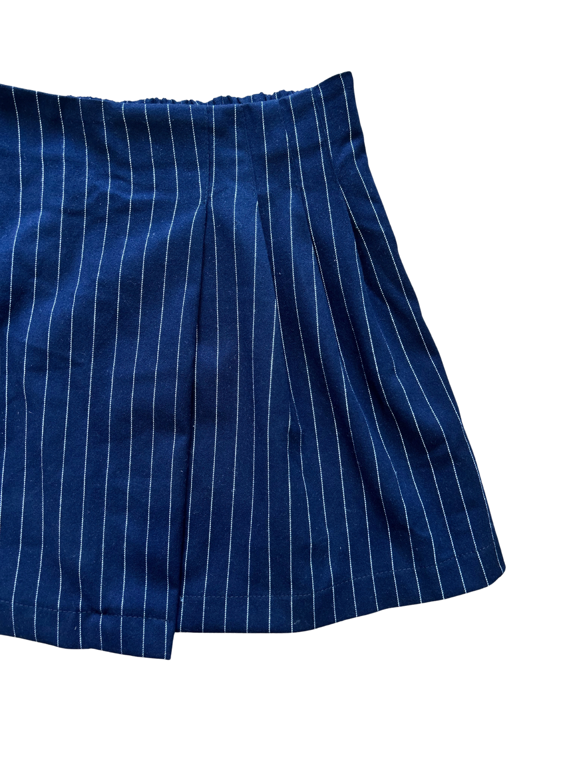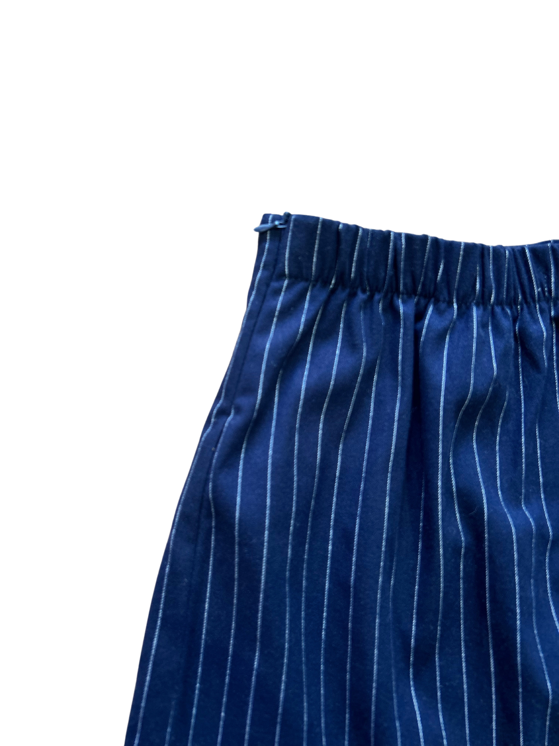 Completo Alice in panno formato da panciotto e gonnellina blu gessati.