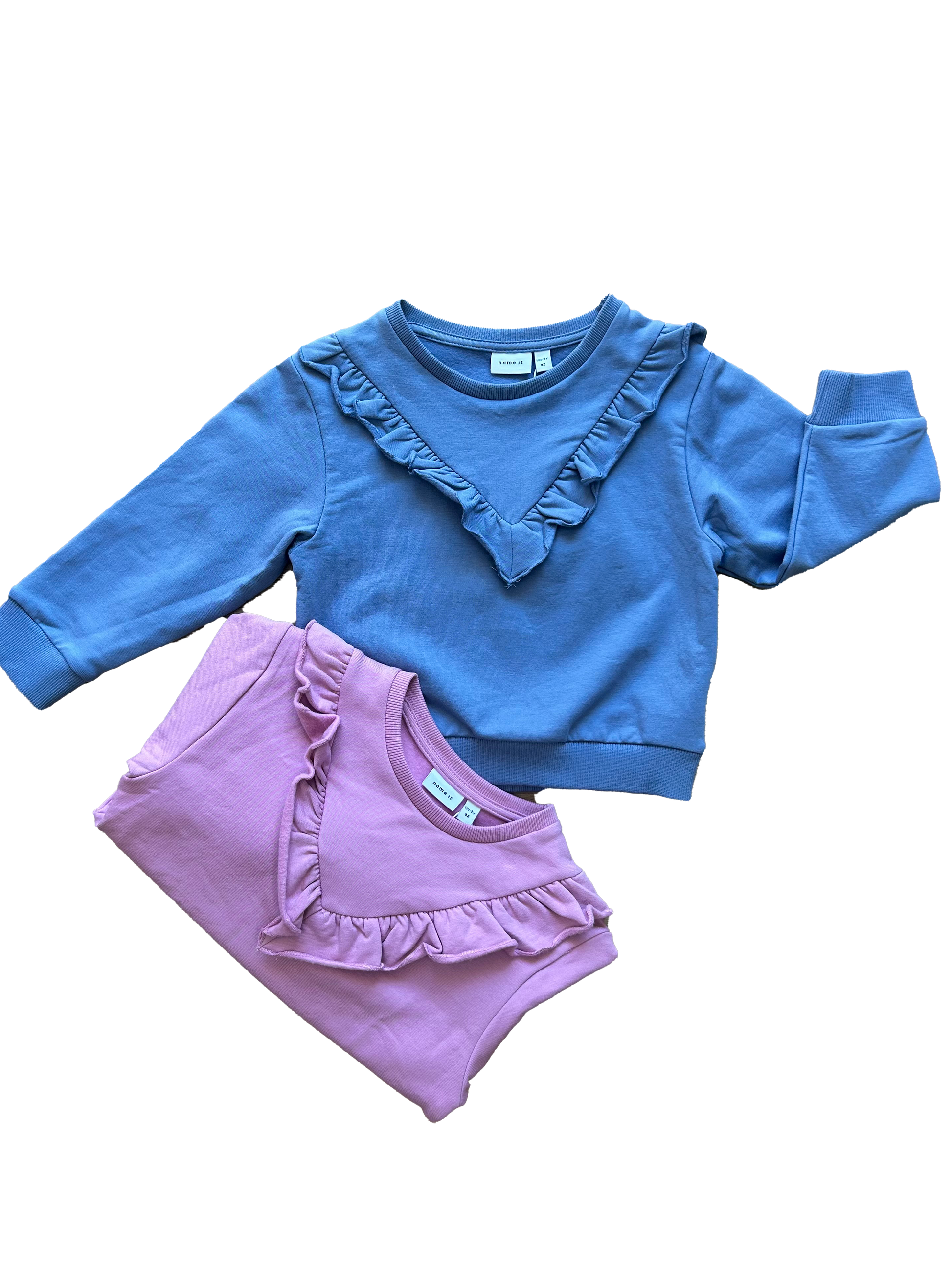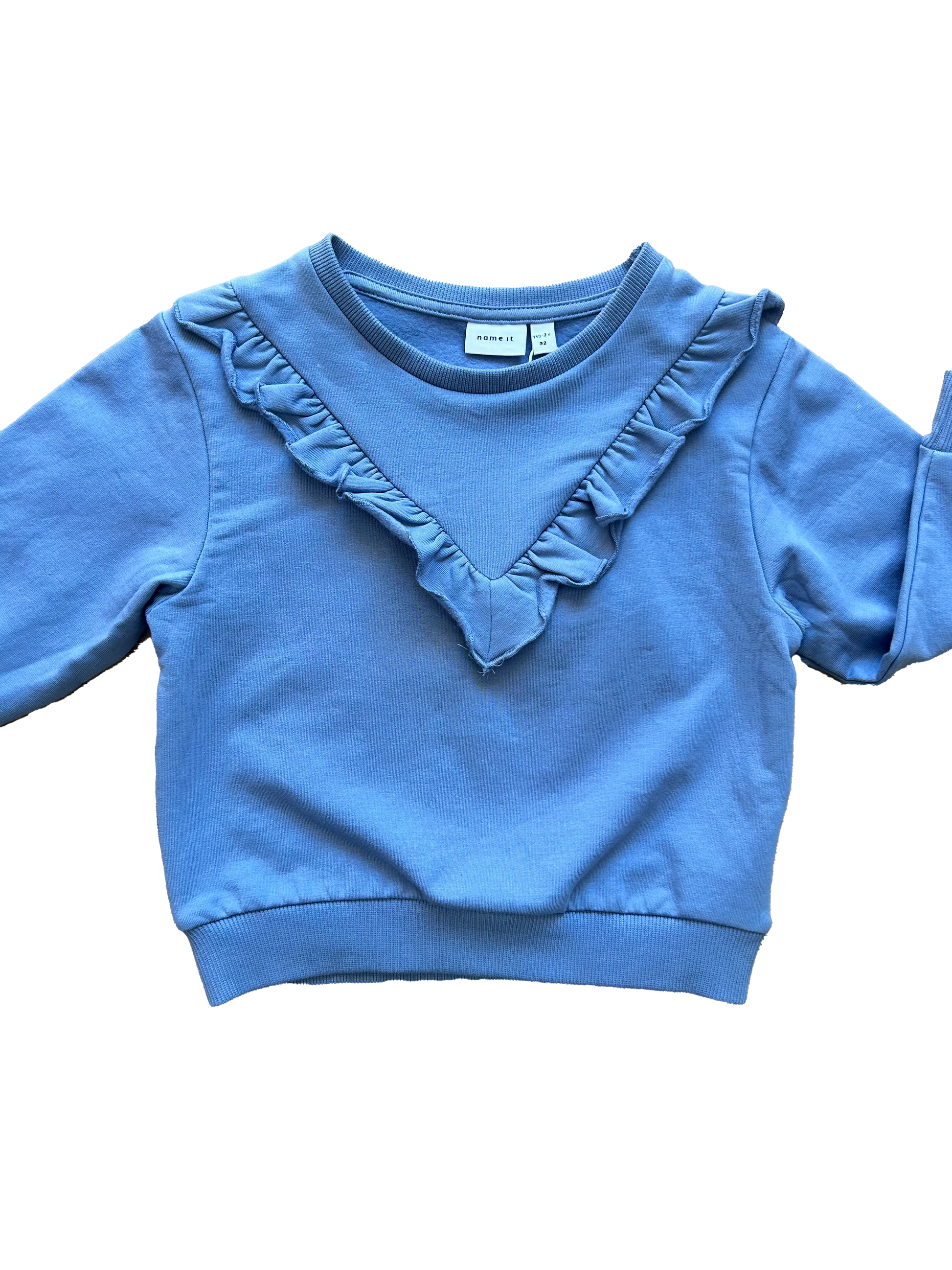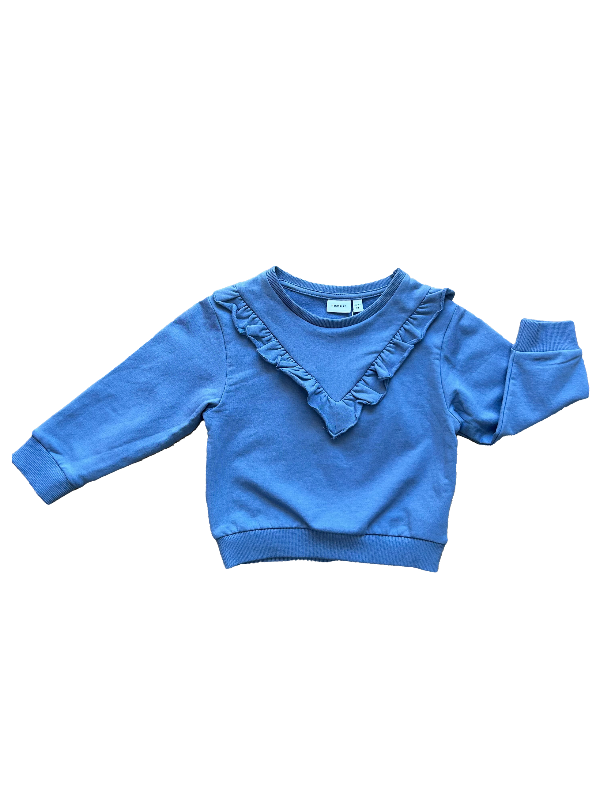 Felpina Name it girocollo felpata all’interno con elastico su polsini e fondo. Impreziosita da una rouche sul davanti che la rende dolce e particolare.