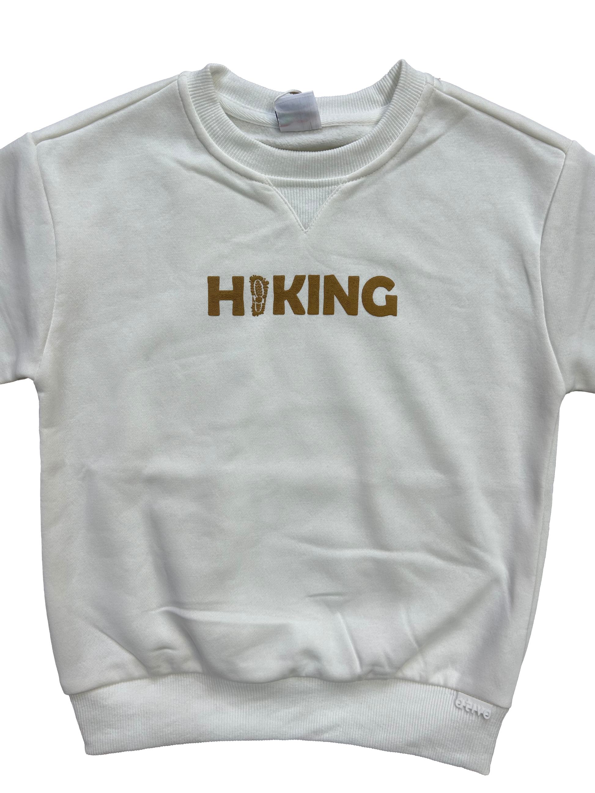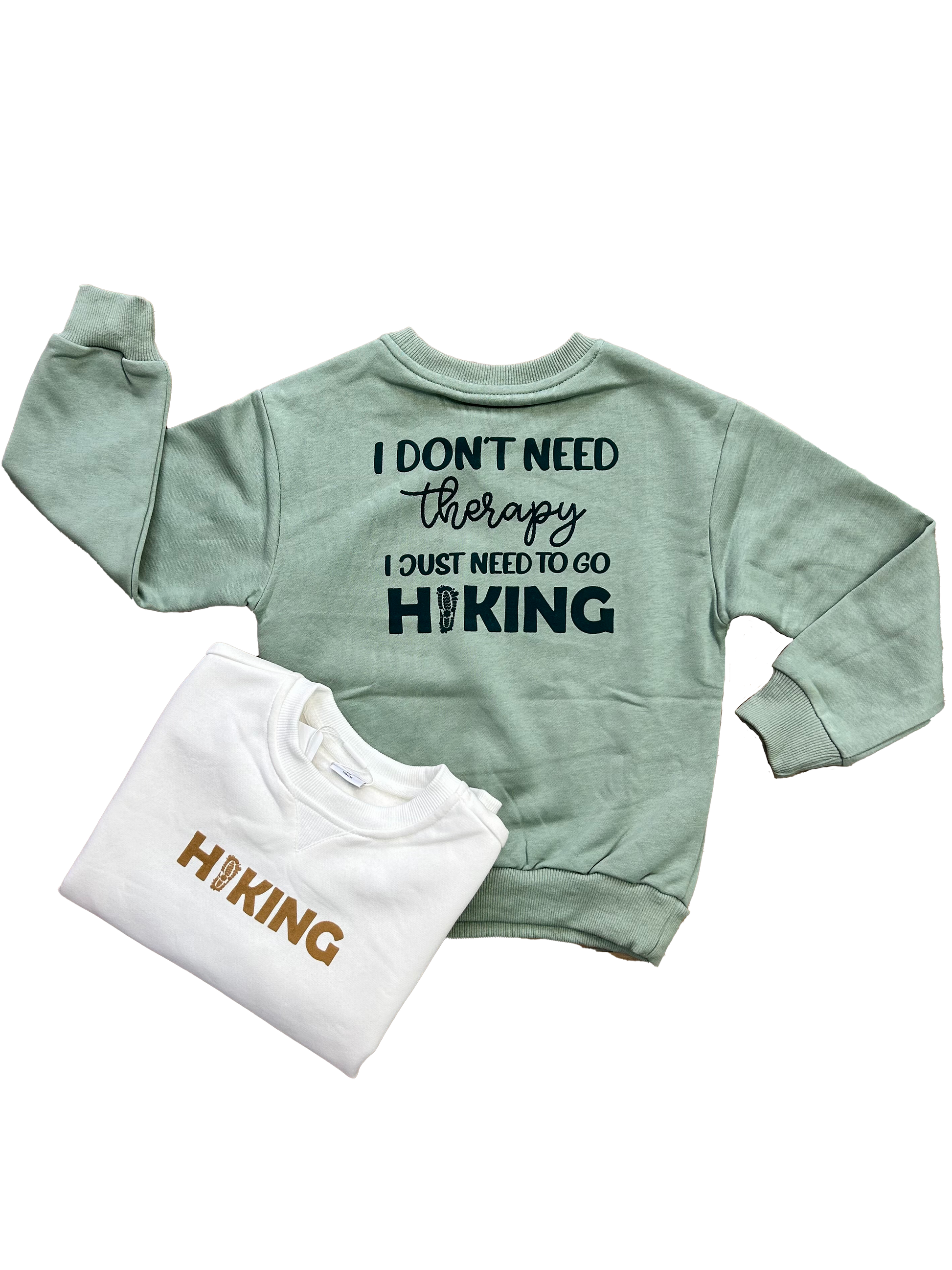 Felpa Ativo girocollo disponibile nei colori verde salvia e bianco, con stampa più piccola sul davanti e grande sul retro.