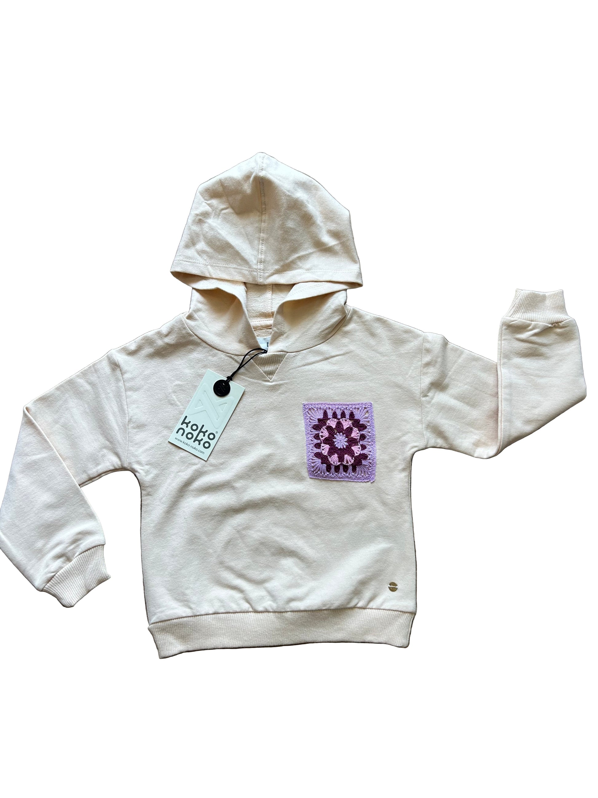Felpina rosa chiaro KOKO NOKO garzata con cappuccio e taschino ricamato multicolor. Polsini ed elastico inferiore.