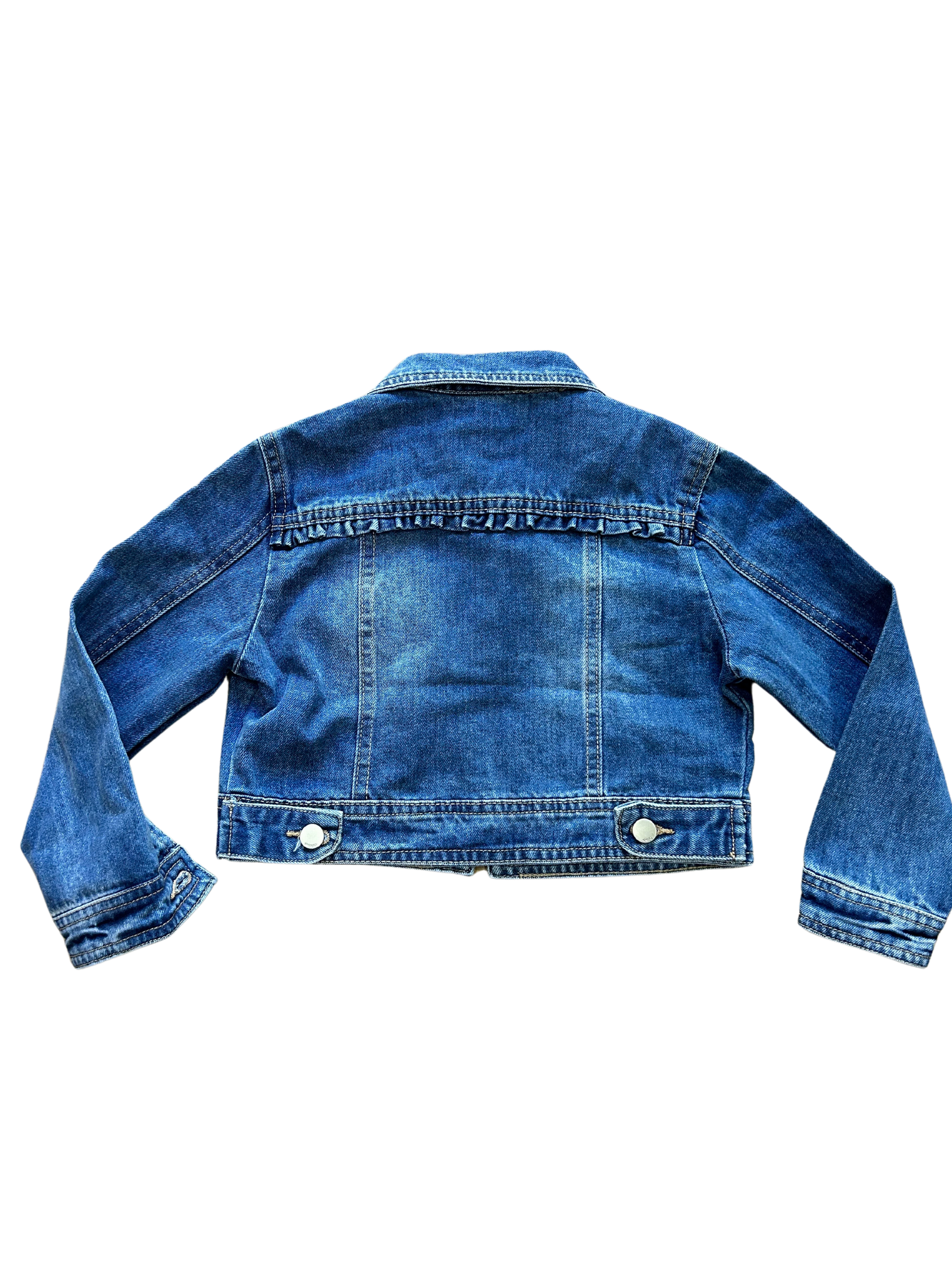 Giacca in denim Ativo, lavaggio medio, con piccole rouches su tasche e sul retro.