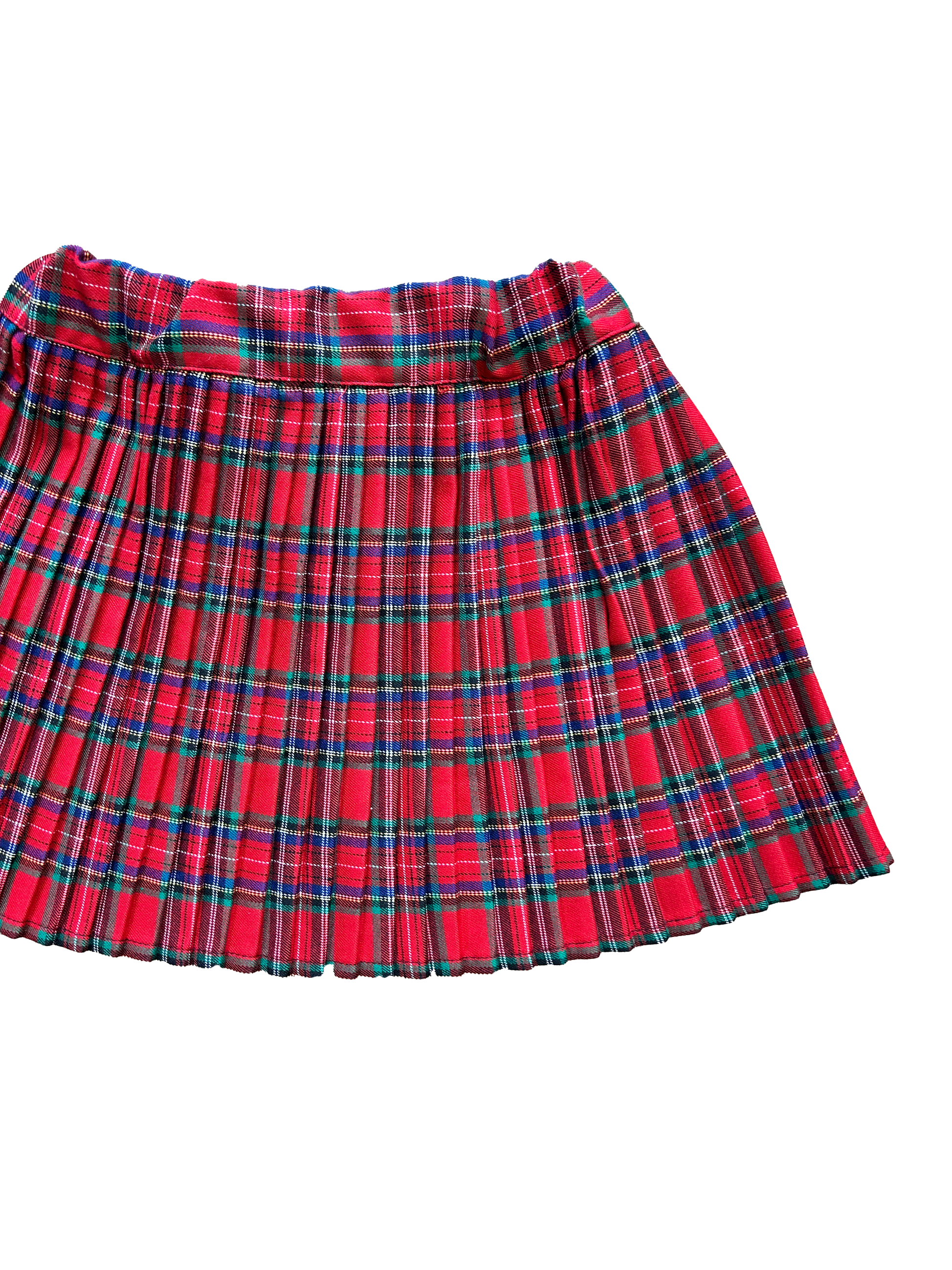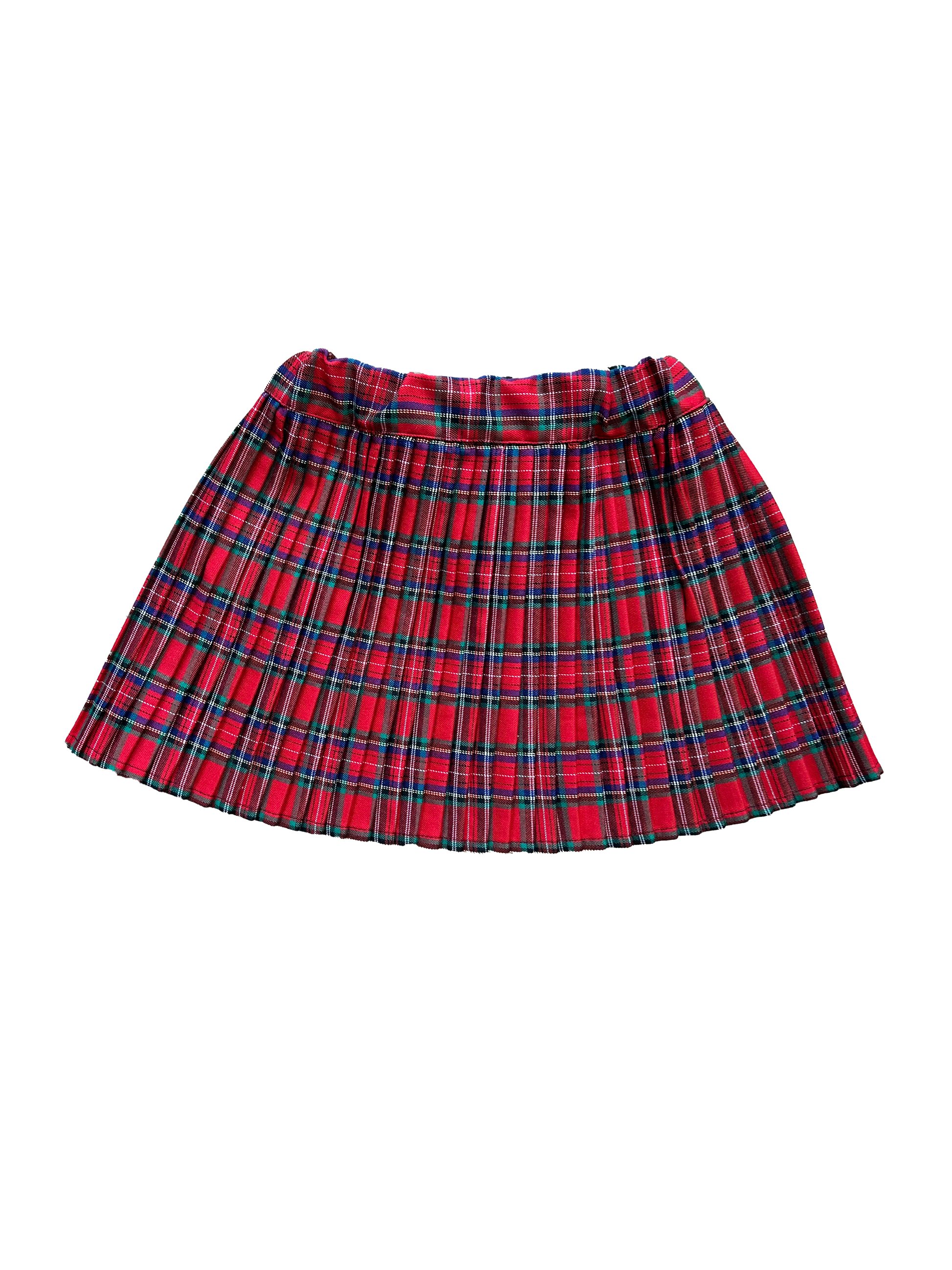Gonna scozzese con fantasia natalizia e pieghe plissettate, dotata di comodo elastico in vita. Calda e confortevole, è perfetta per le festività e ideale da abbinare anche a un semplice lupetto bianco per un look classico e raffinato.