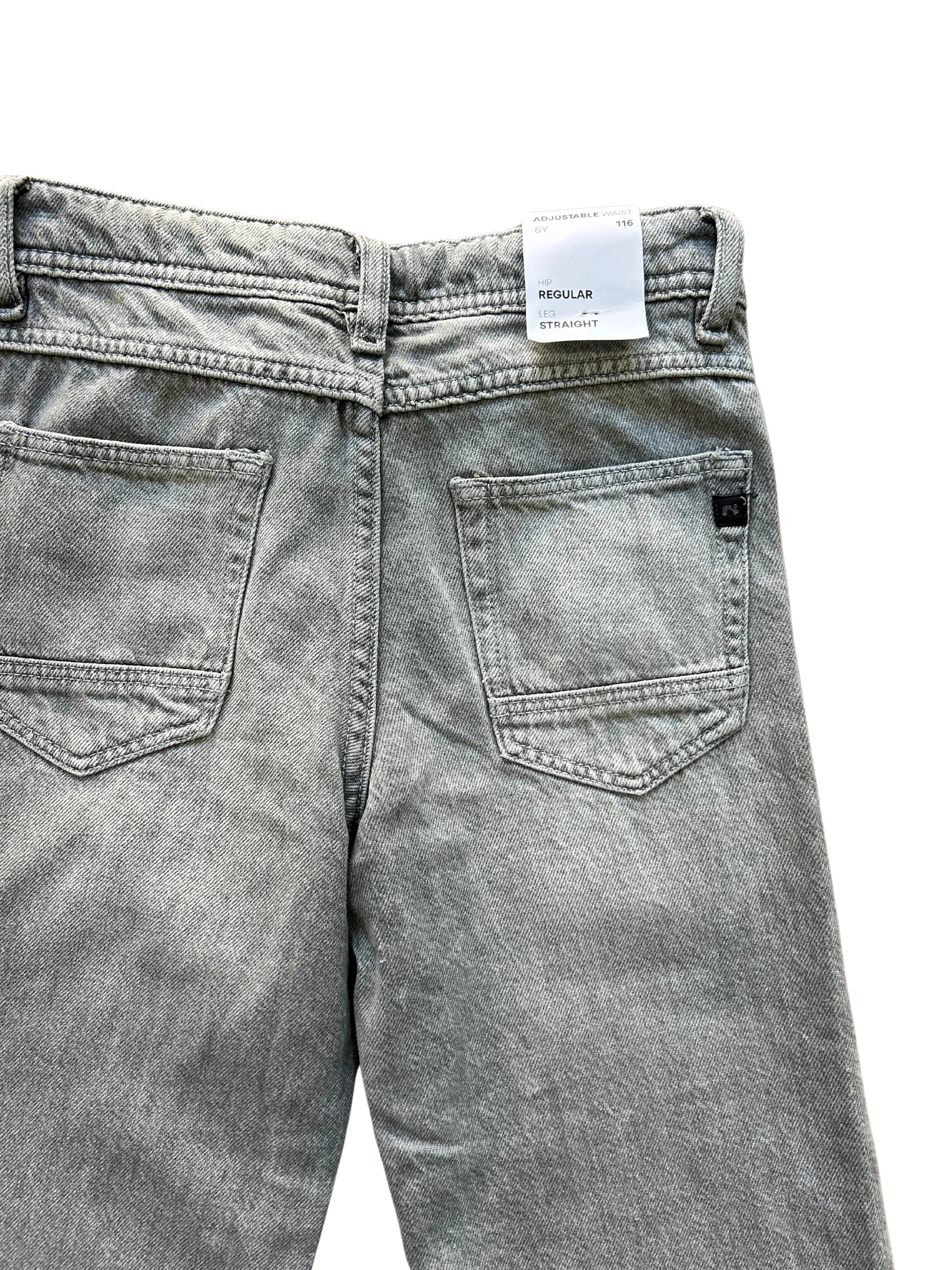 Jeans Name-it lavaggio grigio delavato, modello regular. All'interno è presente elastico con asole per stringerlo all'occorrenza.