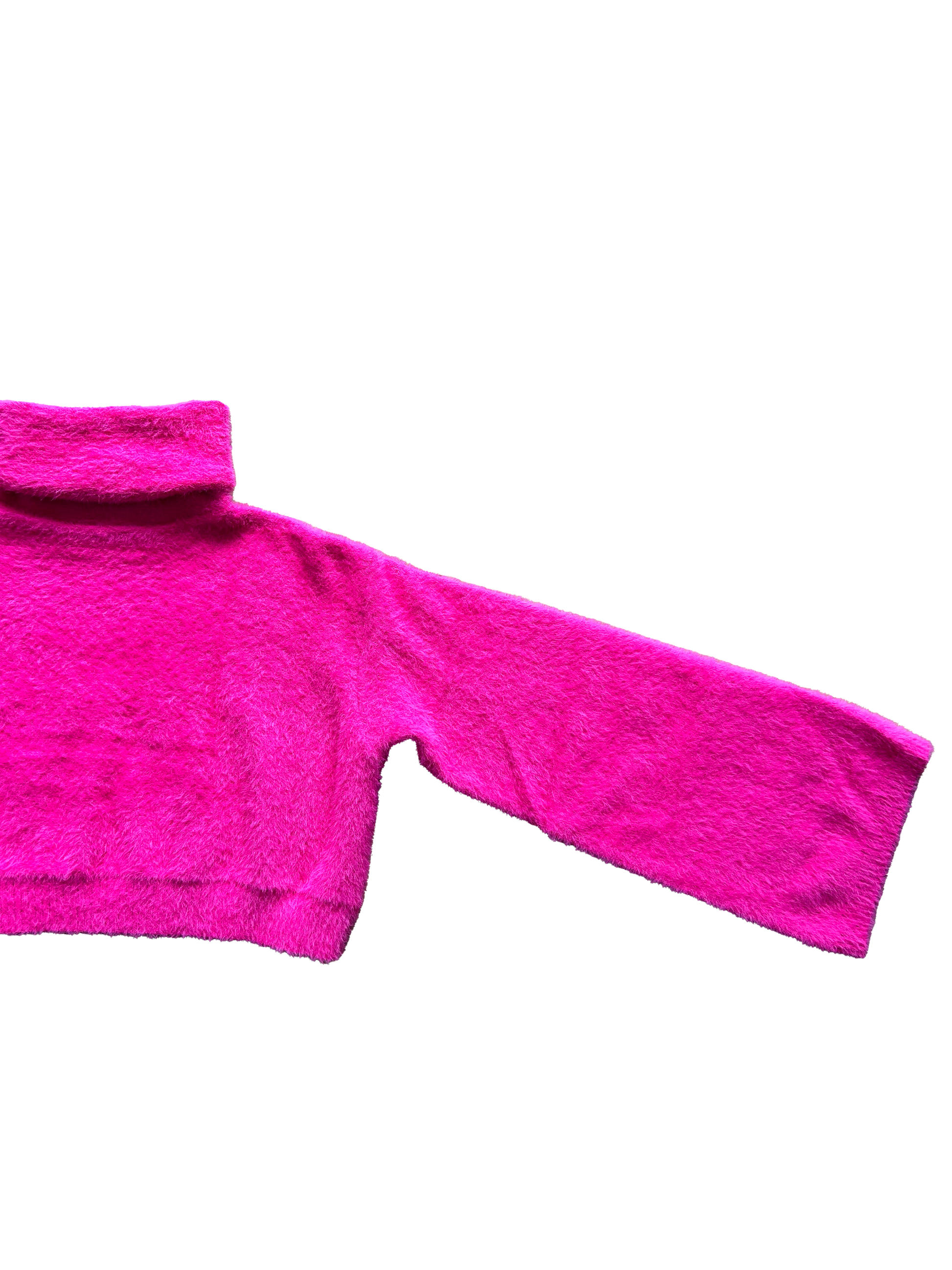 Maglioncino Janice crop a collo alto con maniche a campana, effetto peluche morbido e caldo.