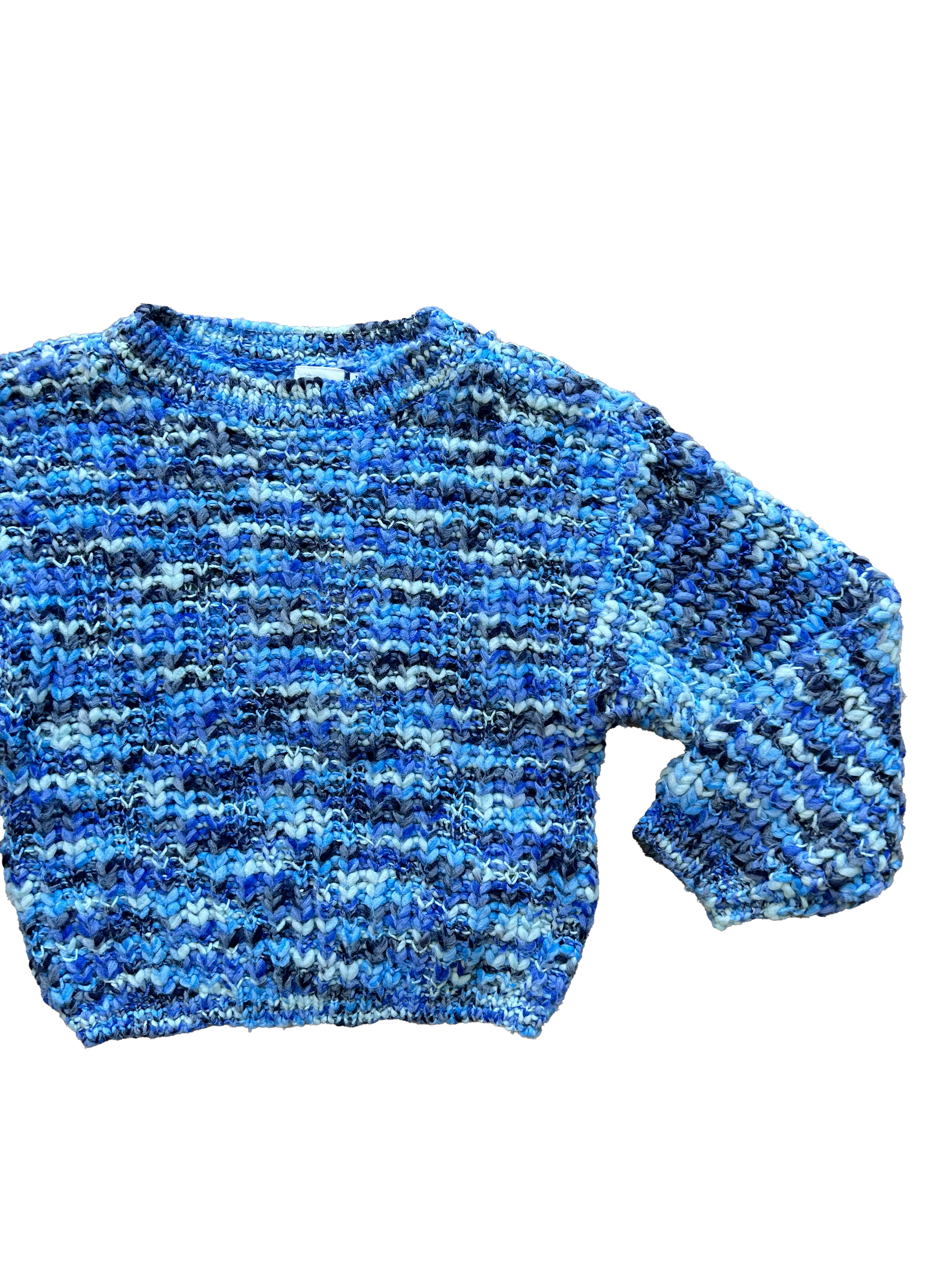 Maglioncino Name it doppio con trama a treccia, morbidissimo e caldissimo. Presenta sfumature di blu, bianco, azzurro e nero per un effetto particolare e alla moda.