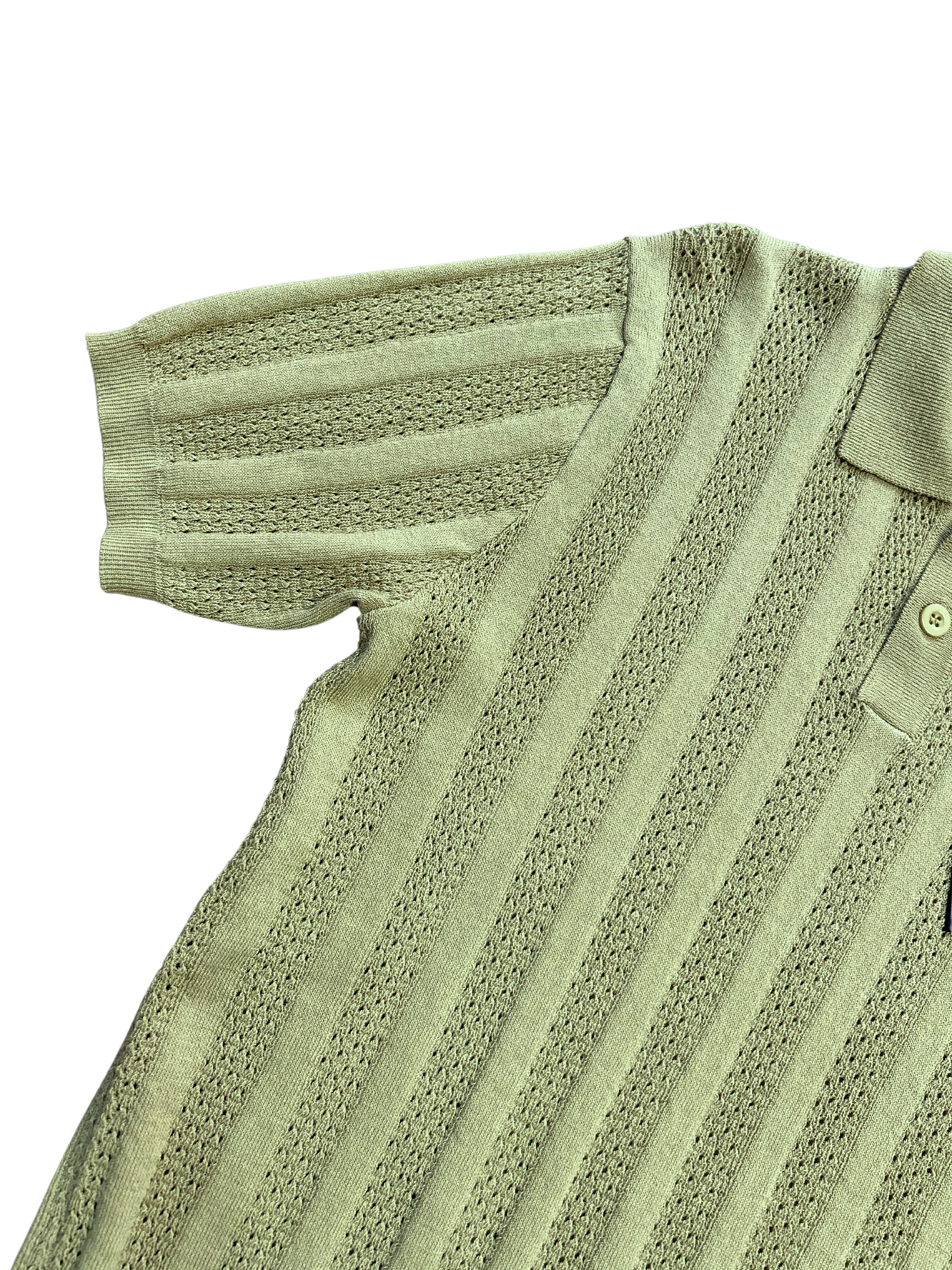 Polo Never Too in filo verde oliva con colletto e bottoncini, un capo elegante ma al tempo stesso moderno e di tendenza.