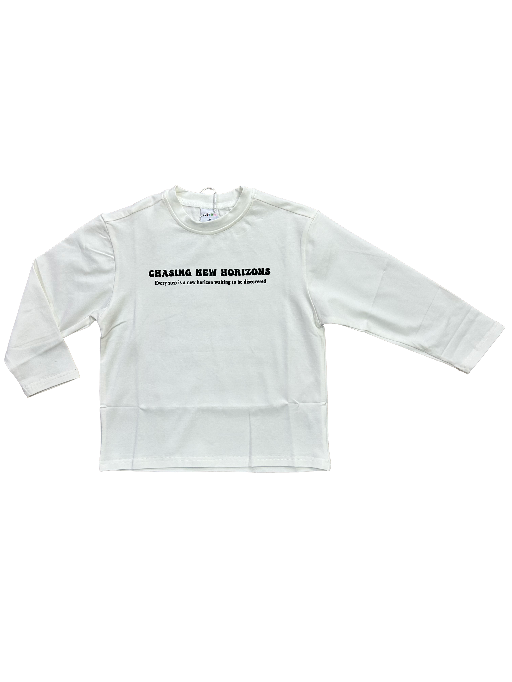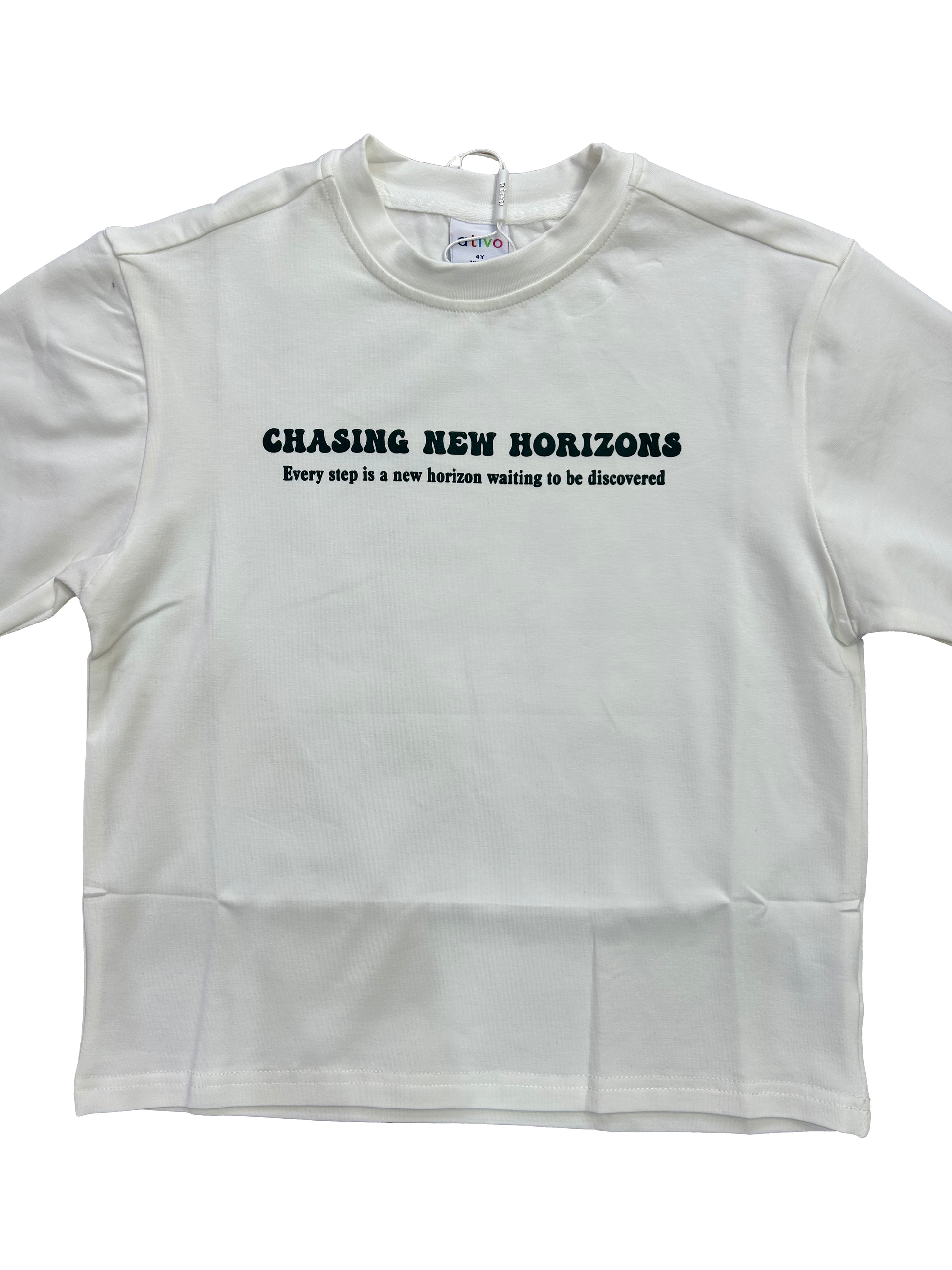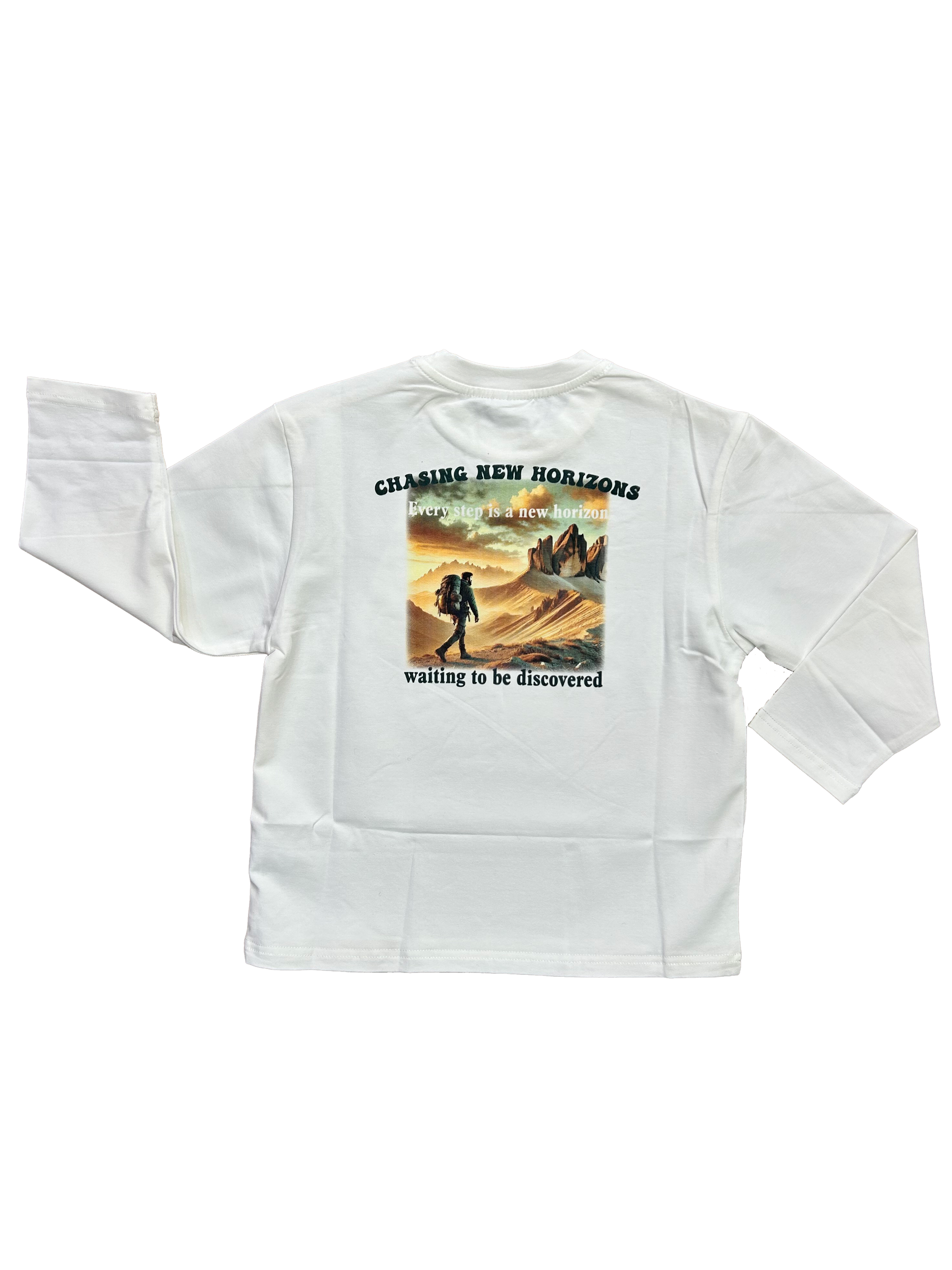 Shirt Ativo in caldo cotone bianca con stampa centrale sul davanti e grafica più grande sul retro nei toni del verde salvia e beige.