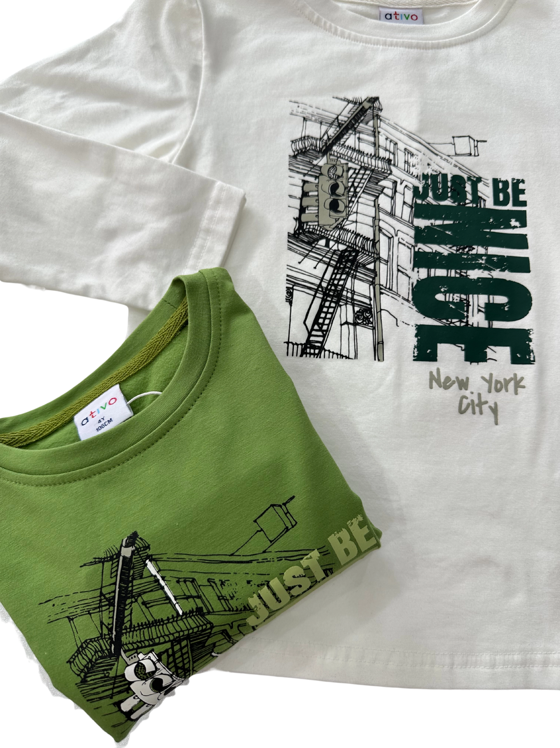 Shirt Ativo manica lunga in caldo cotone disponibili in bianco e in verde lime.