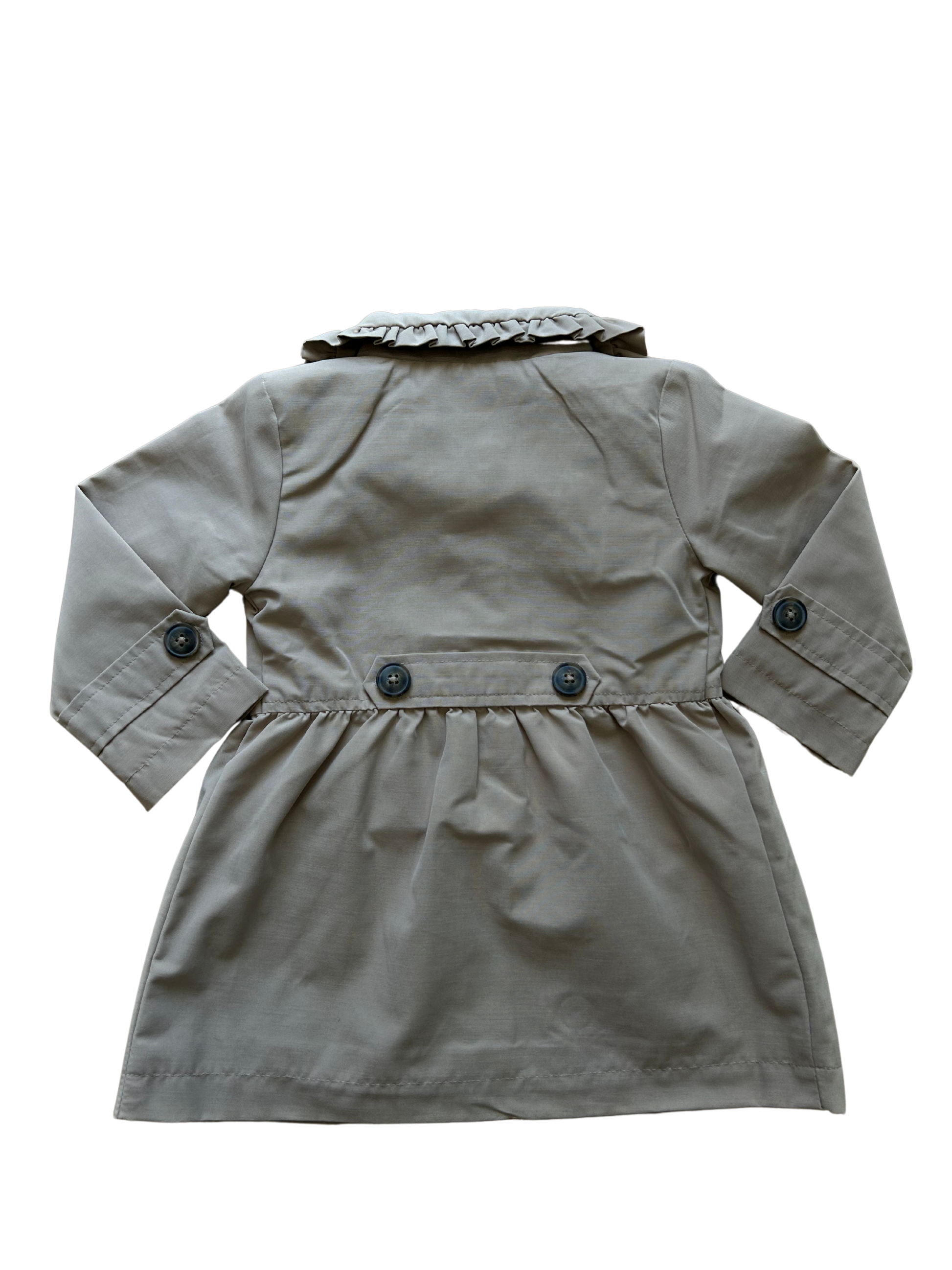 Trench Name-it a cappottino, colletto con rouches, tasche anteriori e bottoni effetto legno.