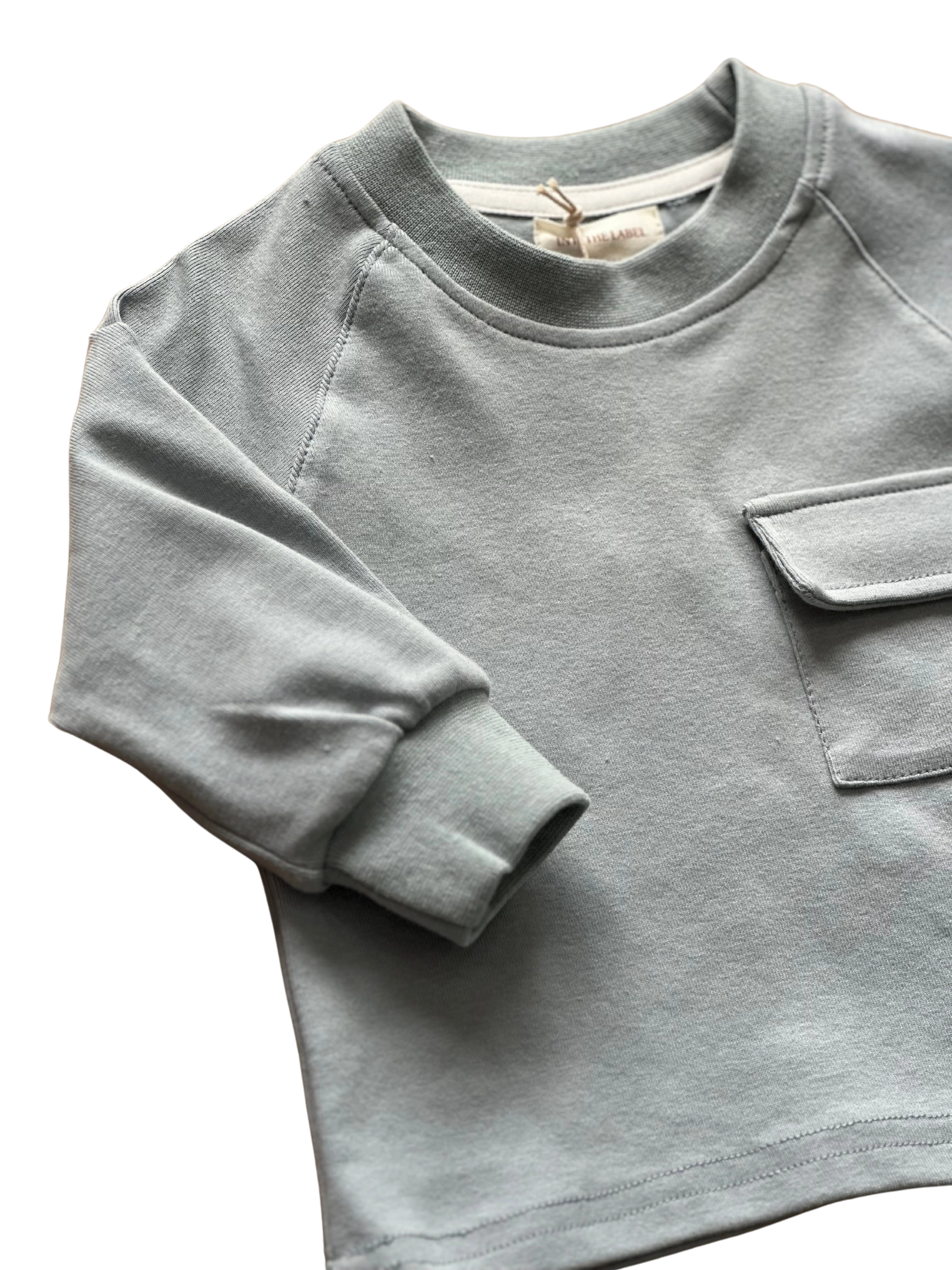 Tuta completa Inti The Label in cotone azzurro polvere. Composta da: pantalone con elastico e laccetto regolabile in vita, tasconi sul davanti. E felpina con elastico ai polsini e taschino davanti.